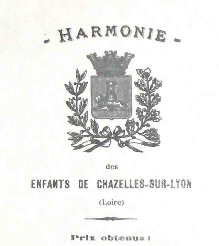 C’est ainsi que l’Harmonie des Enfants de Chazelles-sur-Lyon se trouvait en 1867 en 3° division obtenant un 2° prix à Mornant. Elle obtenait le 1° prix à Clermont-Ferrand en 1869, à Grenoble en 1876 et Lyon l’année suivante. Elle passait en 2° division en 1879 avec un 1° prix à Saint-Etienne puis Genève en 1882. Elle entrait en 1° division en 1884 puis en division supérieure après un concours à Moulins en 1890 avec obtention du 1° prix « ascendant » assorti de félicitations. Les succès continueront à accompagner cette formation musicale sous la direction de nombreux chefs successifs dirigeant de nombreuses générations de Chazellois qui se sont succédé dans les rangs de l’Harmonie. Quel ancien d’aujourd’hui ne se souvient pas des répétitions de l’orchestre au dernier étage de la Mairie d’aujourd’hui, des concerts sous le kiosque de la place Poterne, des défilés commémoratifs toujours hauts en couleurs. Le dernier président a été André Desage. Elle a définitivement disparu du paysage chazellois en 2002.